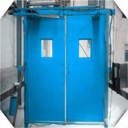 氣動(dòng)無(wú)壓風(fēng)門本身就能完成兩道風(fēng)門之間的互鎖要求,但是純氣動(dòng)風(fēng)門與電氣結(jié)合的自動(dòng)風(fēng)門相比慢了半拍,這是由于氣體的流動(dòng)速度遠(yuǎn)遠(yuǎn)低于光電的傳播速度造成的結(jié)果。電控氣動(dòng)無(wú)壓平衡風(fēng)門自動(dòng)控制裝置的防爆箱里的PLC通過(guò)控制電磁閥來(lái)間接的控制氣缸的動(dòng)作,在設(shè)計(jì)軟件程序里已經(jīng)規(guī)定了兩道風(fēng)門之間必須具有互鎖功能,也就是兩道無(wú)壓風(fēng)門之間存在優(yōu)先順序,根本不存在同時(shí)打開(kāi)的條件。