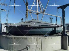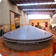 采用錐角為30度的截錐形圓錐殼體頂蓋結構,圓筒形立壁及外密封圈等三部分焊接為一體。由于門體較大,將門體分別分成四塊和八塊兩種組合方式。塊與塊之間的聯接采用角鋼搭焊并夾以膠墊(立壁部分用石棉墊)用螺栓緊固。參看附圖。